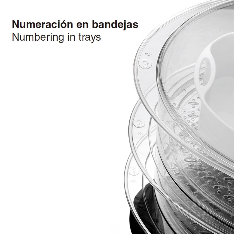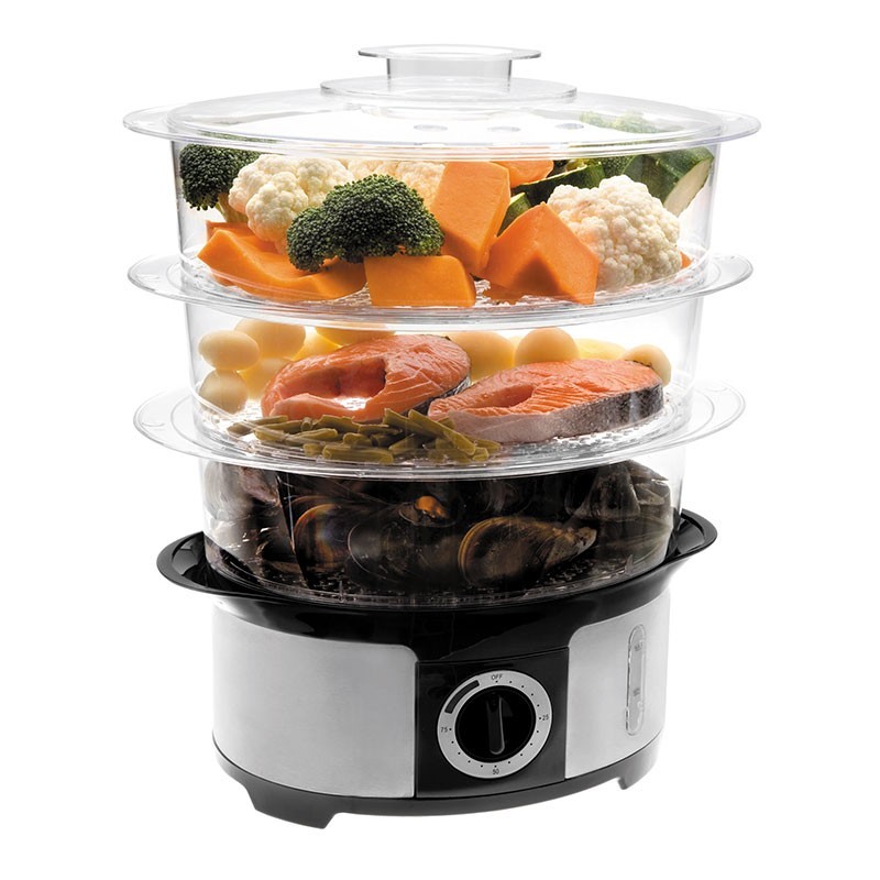 Der kocher - elektrischer dampfer, die wir ihnen hier, hat 3 körbe, die sie zubereiten können bis zu 3 gänge auf einmal. Programm die dauer der garzeit, den rest erledigt dieses kleine, praktische gerät.
