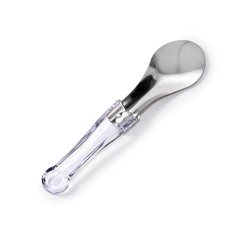 Servierlöffel fur Eis aus Edelstahl mit Ergonomischer transparent Griff und einer Länge von 26,5 cm.