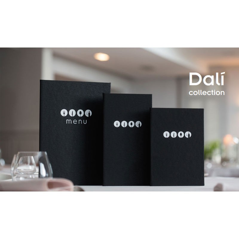 Werbeschriften sammlung Dalí gefertigt in kunstleder, mit heißsiegelfestigkeit in farbe weiß und festen hüllen aus PVC. Ideal für gastgewerbe. Größe zu wählen.