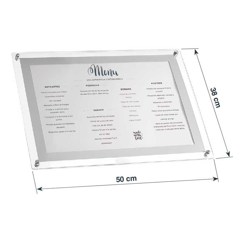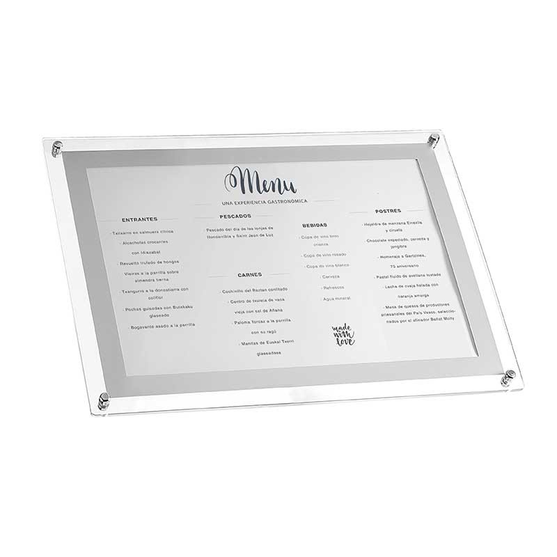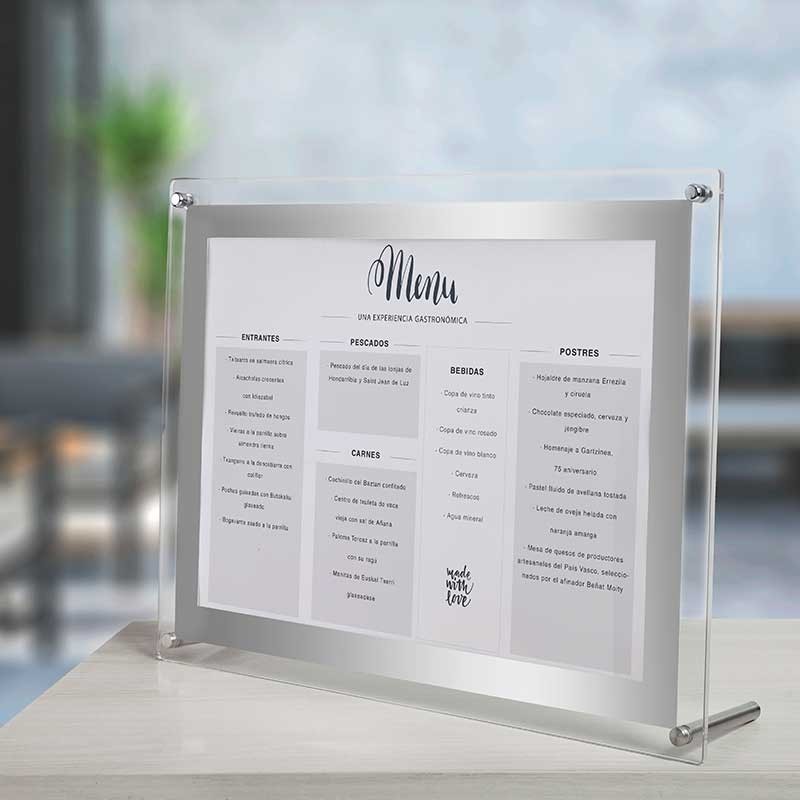 Menu-Ständer A3-Format mit Acryl-Tableau. Freistehend oder fur Wand- oder Tischmontage.