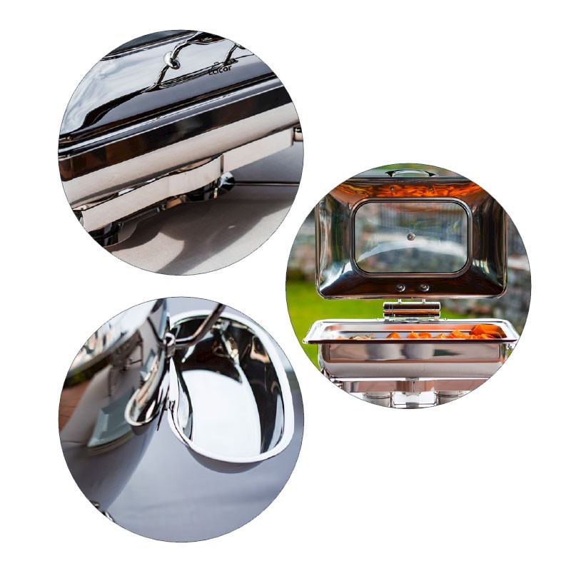 Die palette LUXE " für Chafing Dish ist speziell für profis in der küche, sowohl in der hotellerie wie gastronomie, buffets und großen feste und veranstaltungen, wo die temperatur zu halten, die lebensmittel, die sie dienen sollen die gäste ist von größter bedeutung. Die palette LUXE ist aus rostfreiem edelstahl 18/10 - hohe qualität-garantie bietet maximale in bezug auf festigkeit, haltbarkeit und hygiene.