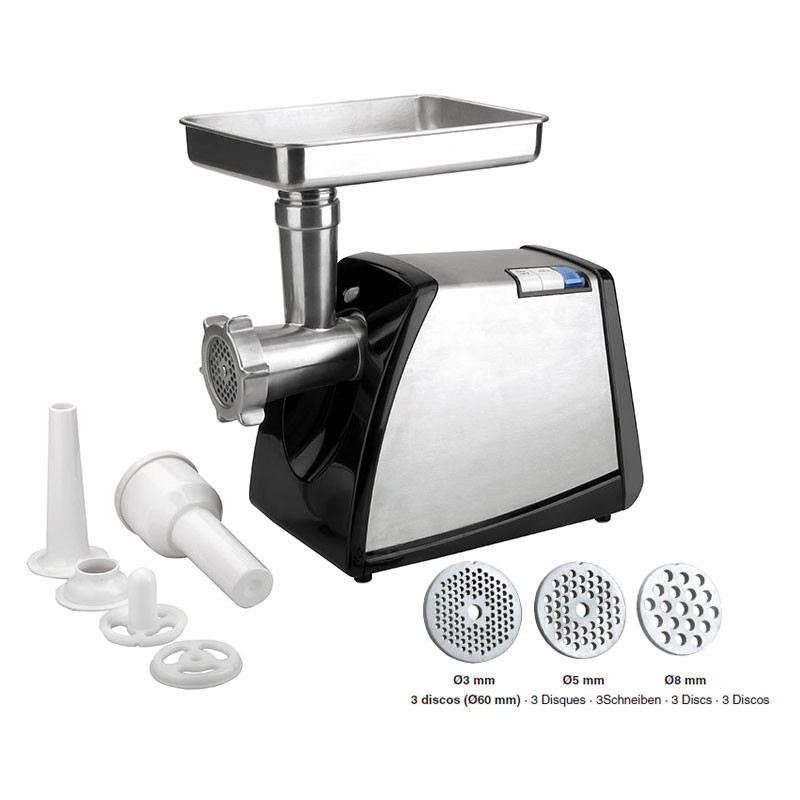 Fleischwolf elektrischer fleisch modell Home 800 W, mit 3 austauschbare scheiben aus edelstahl zum hacken in verschiedenen größen.