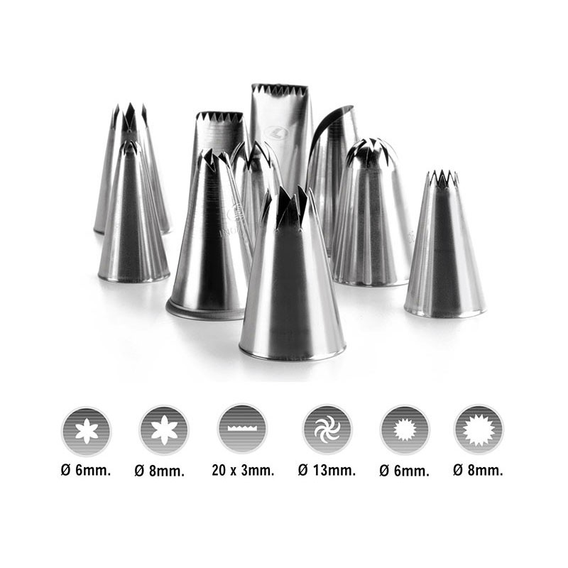 Erweitern Set 6 düsen - gebäck für spritzbeutel mit 4 verschiedenen formen und hergestellt aus edelstahl 18/10 - hohe qualität und korrosionsbeständigkeit.