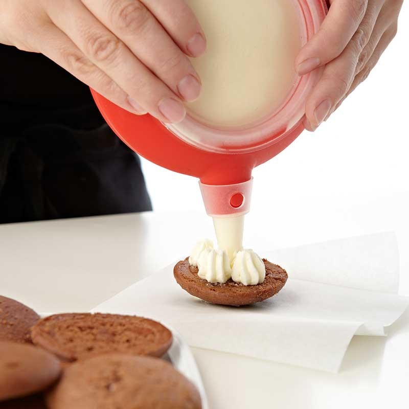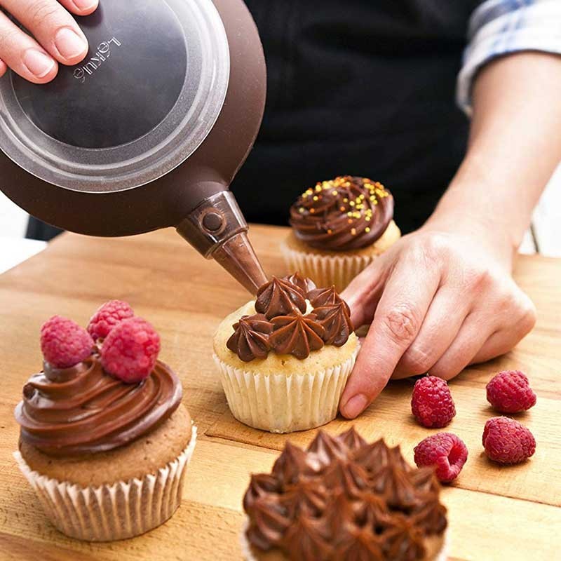 Ich liebe gebäck, aber probleme mit der einrichtung? Decomax ist die lösung. Lékué erfindet den spritzbeutel, um sie allen zugänglich zu machen. Küche und dekorieren, mit 6 verschiedenen düsen, um zu zeichnen, zu tun, blumen, kugeln, muscheln... Einfach zu bedienen und zu reinigen.