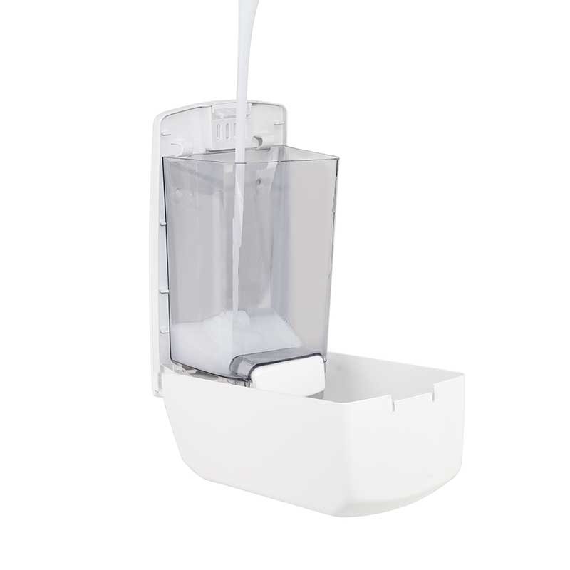 - Spender für Seife oder hydroalkoholisches gel hergestellt in weißem ABS-Kunststoff mit Einlage herausnehmbar 1.1 Liter Hubraum.