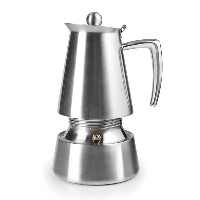 Kaffeemaschine modell Hyperluxe aus rostfreiem edelstahl 18/10, von großer qualität und resistenz, matte oberfläche. Kompatibel mit allen arten von feuern.