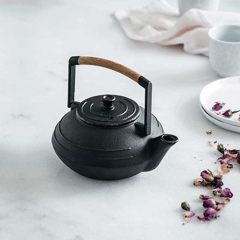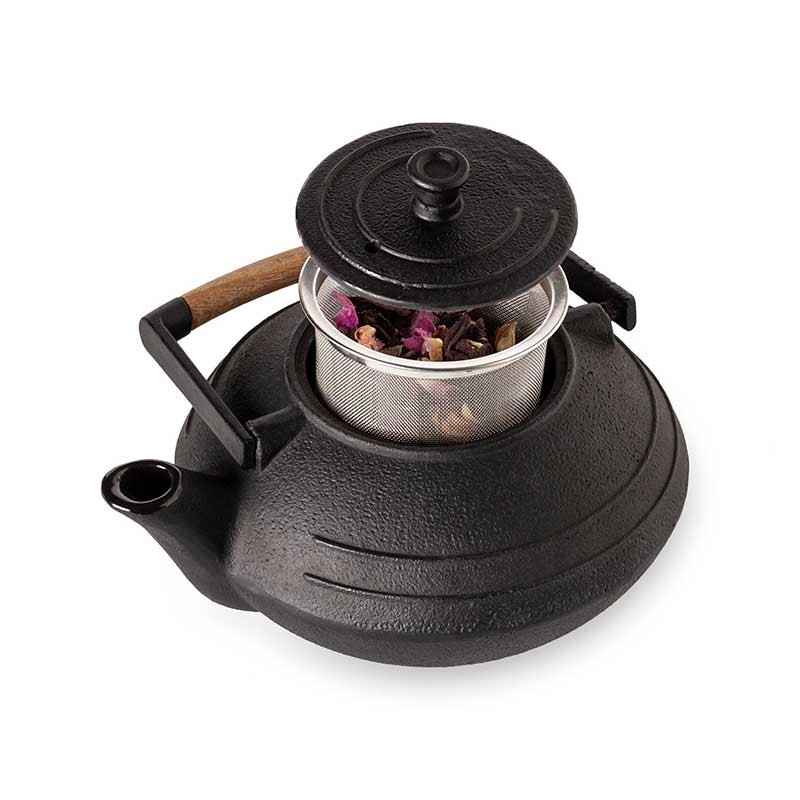 Von Hand gefertigte Teekanne Magma Modell aus hochwertigem Gusseisen mit Teefi lter aus rostfreiem Stahl.