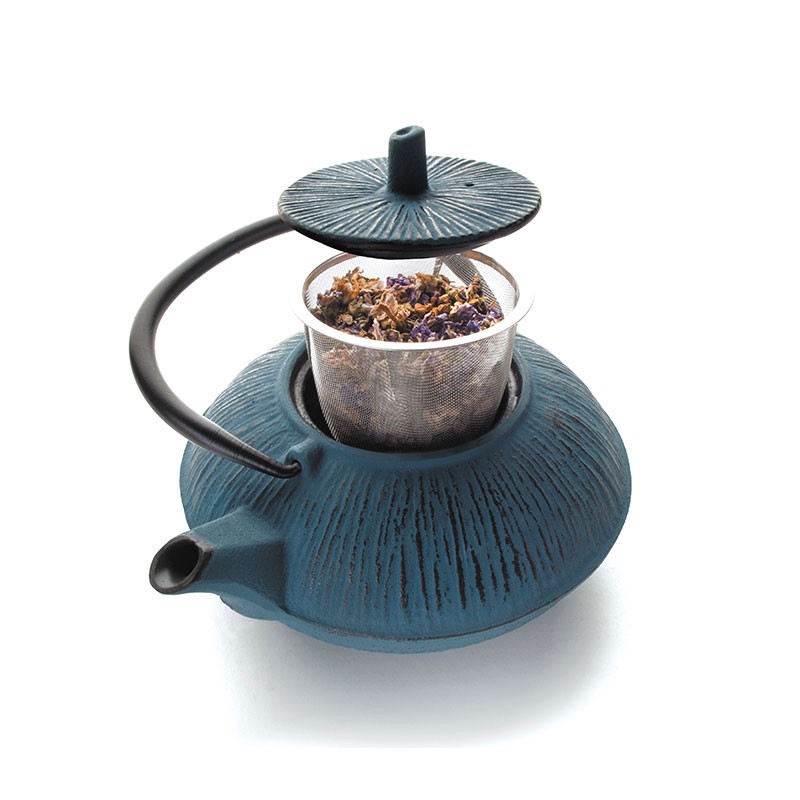Teekanne blau handwerkliche gebaut aus gusseisen, voll kompatibel mit gasherde, induktion, glaskeramik oder in der elektrik.