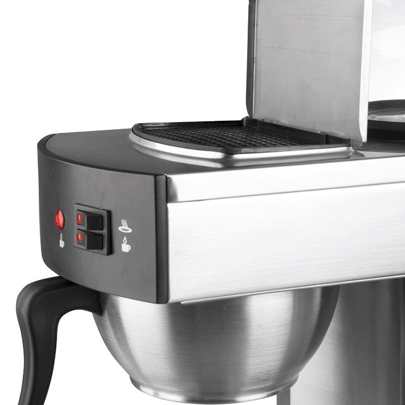 Die kaffeemaschine mit zwei kannen, glas, mit einem fassungsvermögen von 180 liter, die halten den kaffee warm, indem sie auf die platten, die wärme, die sich unterhalb der filter und im oberen teil der kaffeemaschine. Denken sie daran, dass diese platten eignen sich zum warmhalten von kannen gefüllt, so dass, wenn sie wenig kaffee können sich erwärmen und verderben den geschmack.
