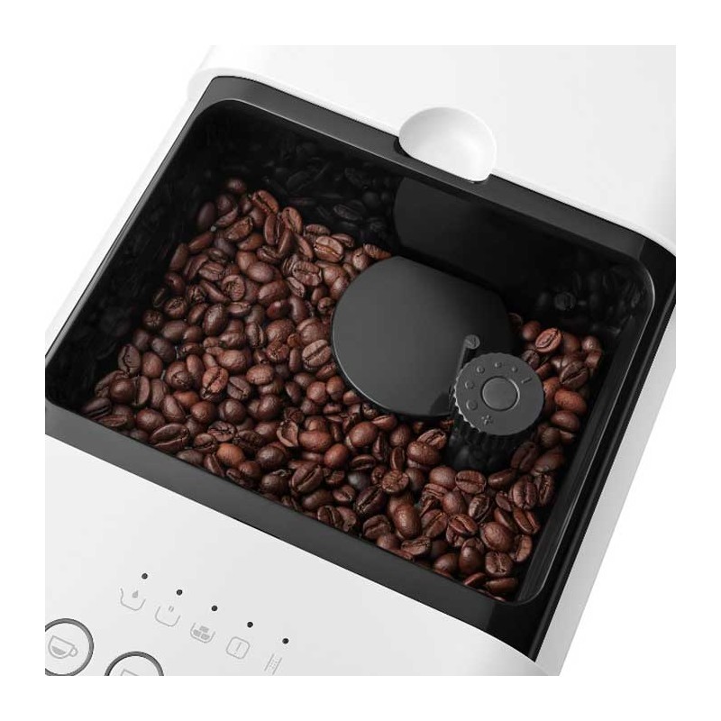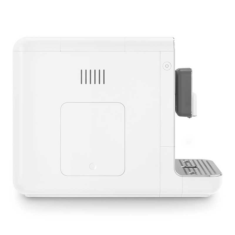 Super-automatische Espressomaschine im 50er-Jahre-Stil im Mattweiß mit 19 bar Druck und Thermoblock-Heizsystem.