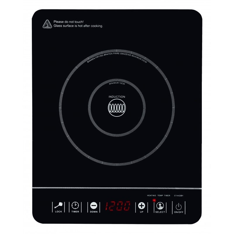 Induktionskochfeld notebook-reihe Professioneller 2000 W, mit 1 bereich für das kochen von 10-20 cm durchmesser, verschiedene leistungsstufen und timer.