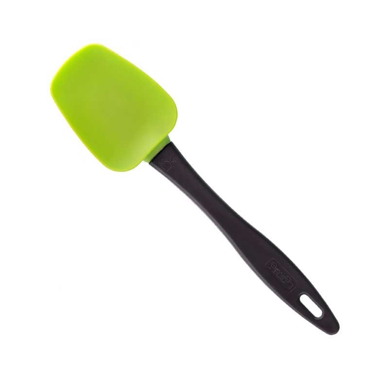 Haushalt löffel, 27 cm länge, hergestellt mit kopf aus silikon in rot oder grün zu wählen und ergonomischer griff aus nylon, schwarz.