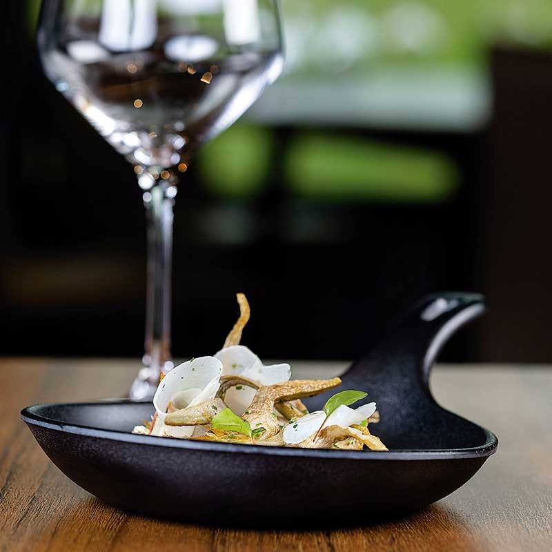 Harz Mini Pfanne Magma-Modell mit sehr naturliches Aussehen, ähnlich wie Gusseisen. Ideal zum Servieren und Anrichten erlesener Gerichte.