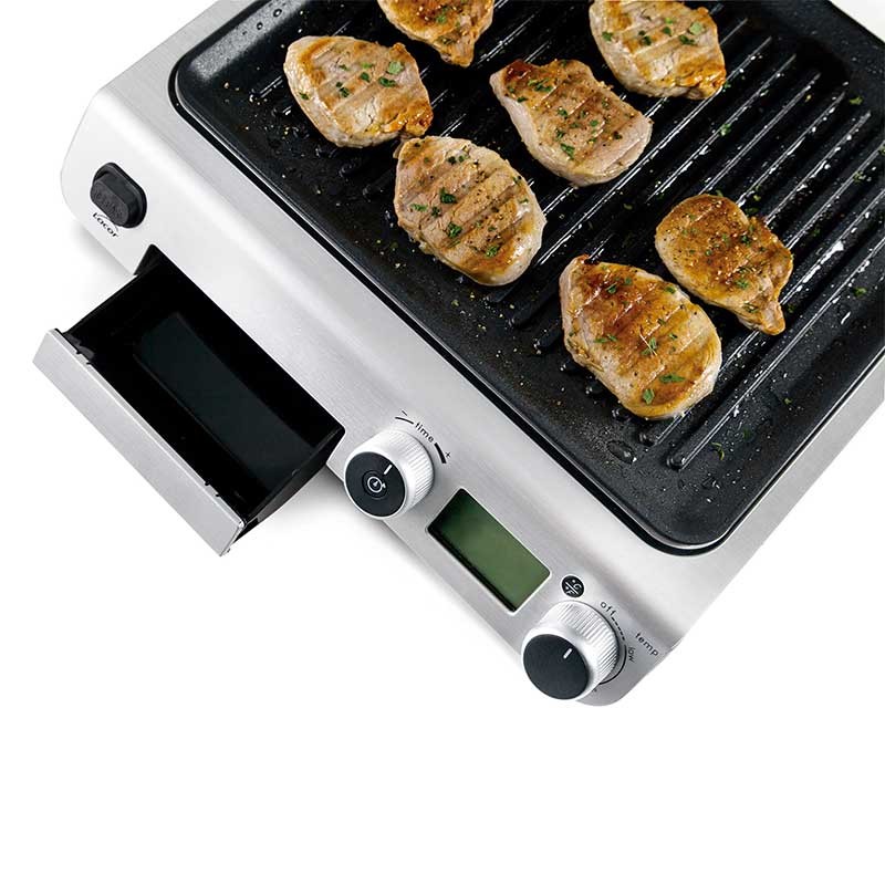 Grill PRO-serie mit einschubgitterroste aluminium-guss-antihaft -, dual-zonen-gekocht, temperatur-regler und timer.