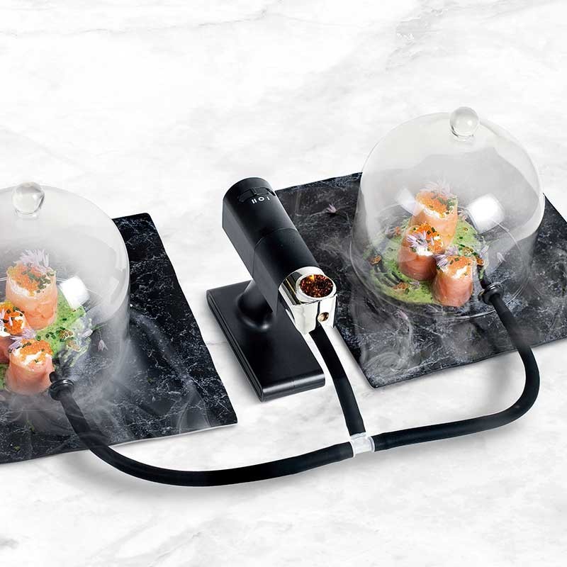 Flexibler Gummischlauch fur Kuchen Räucherapparat. Kann zwei Teller auf einmal räuchern und spart so Zeit.