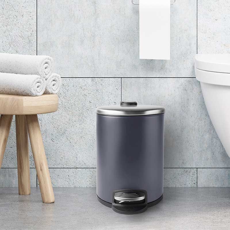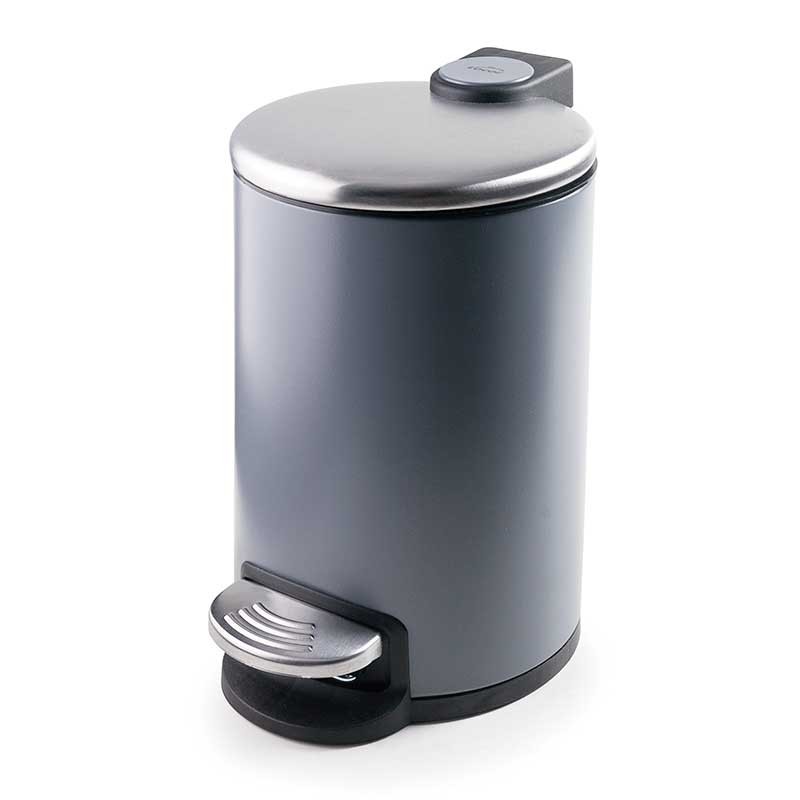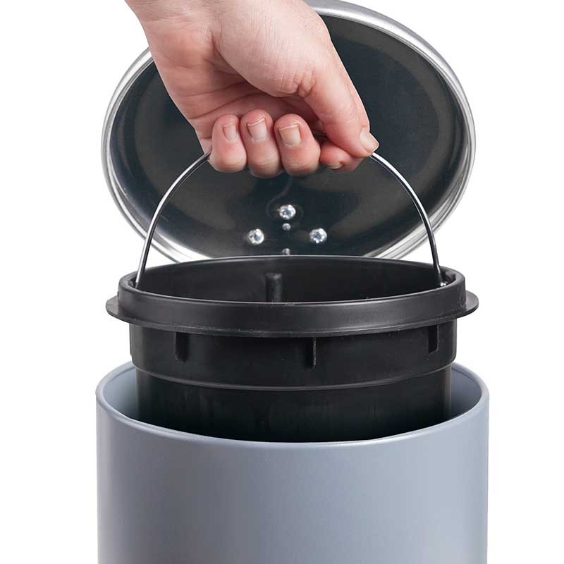 Abfallbehälter 3 Liter aus grauer Edelstahl mit Pedalöffnung und Herausnehmbarer Inneneimer aus Polypropylen mit Griff.
