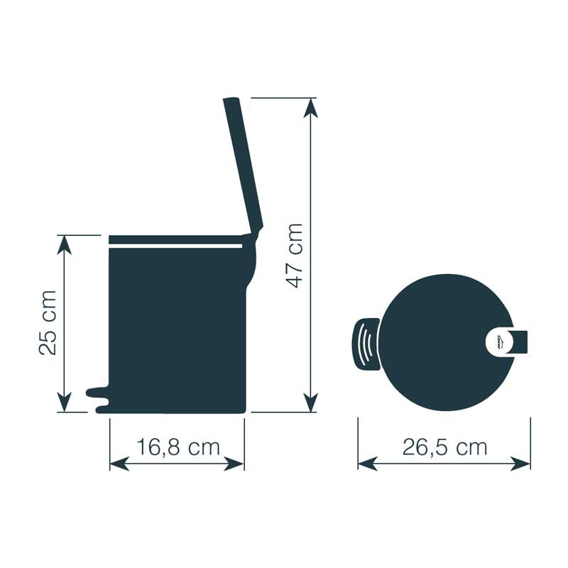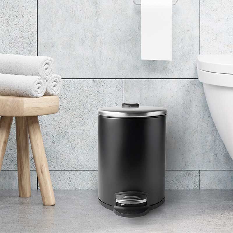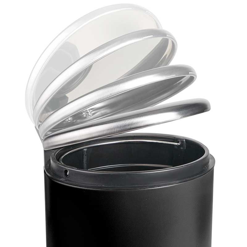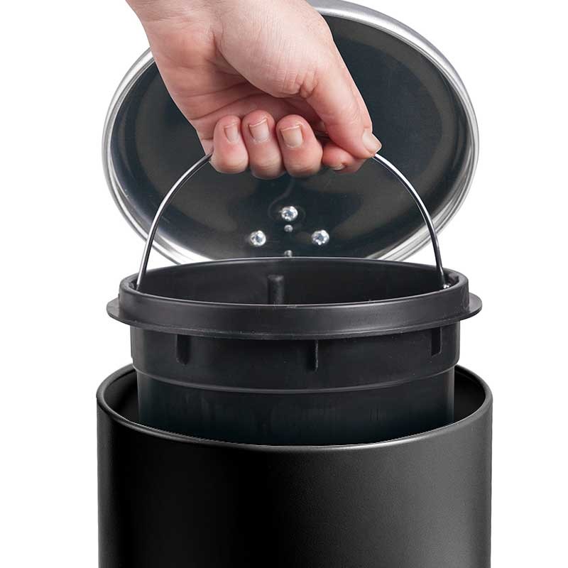Abfallbehälter 3 Liter aus schwarzer Edelstahl mit Pedalöffnung und Herausnehmbarer Inneneimer aus Polypropylen mit Griff.