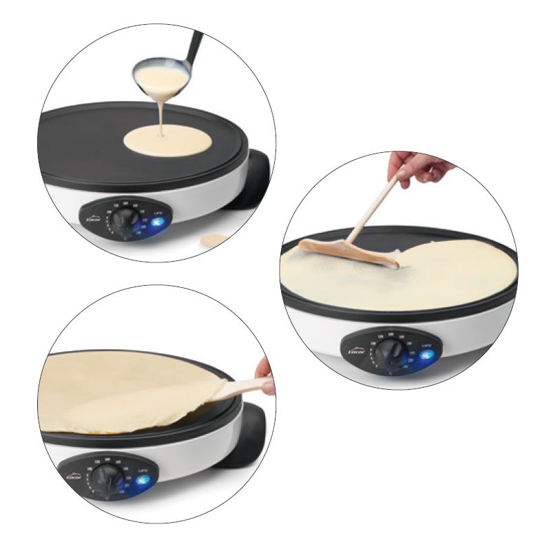 Crepera elektrische White 1000 W, mit temperaturregler bis 240ºC und antihaft-oberfläche von 30 cm Inklusive zubehör aus holz.