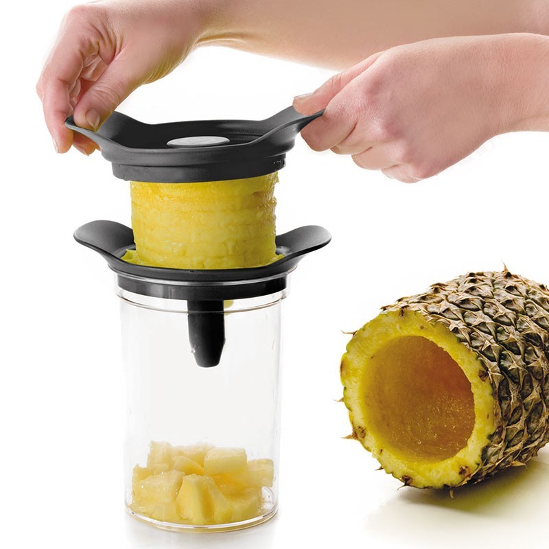 Set 3 in 1, hergestellt aus rostfreiem stahl und ABS mit einem peeler ananas, ein cutter-behälter mit einer basis und drücker oder präsentation.