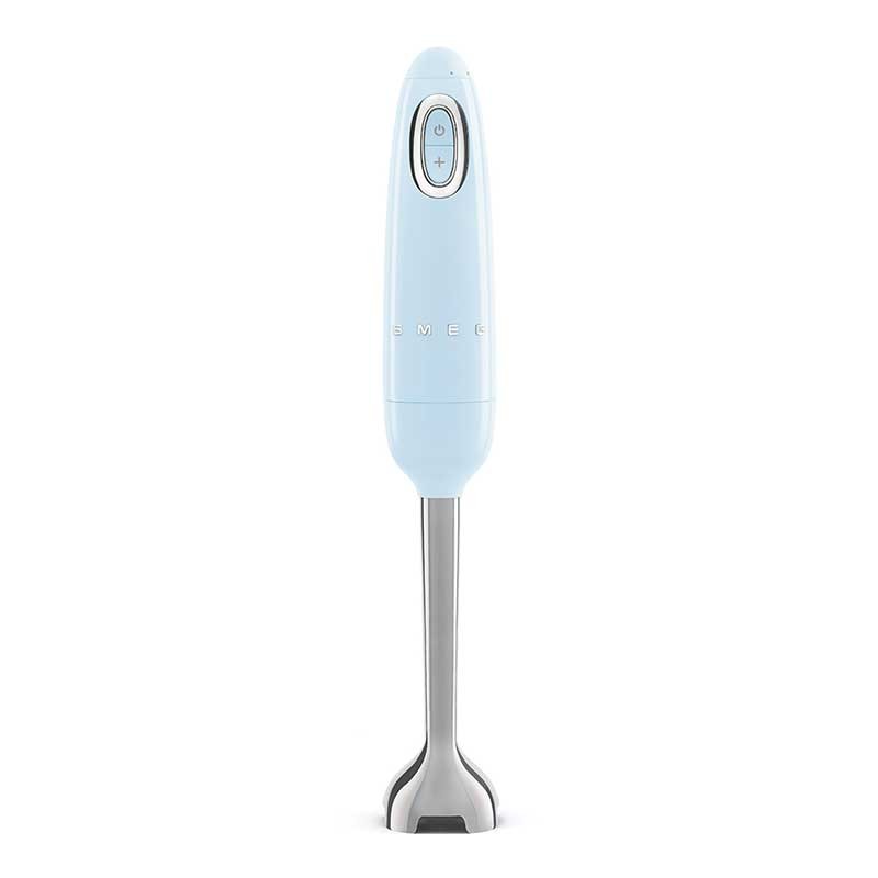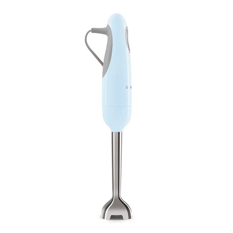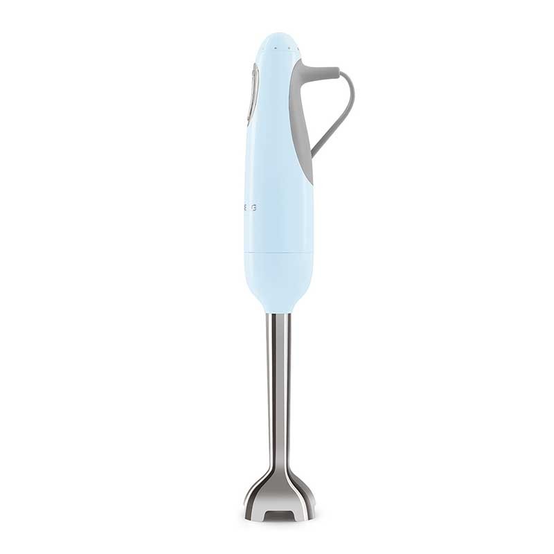 Handmixer mit himmelblauem Gloss-Finish im Stil der 50er Jahre mit 700 W Leistung, variabler Geschwindigkeit und Turbo-Funktion.