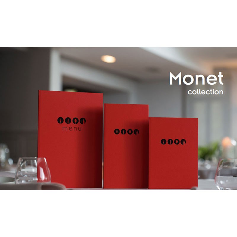 Werbeschriften sammlung Monet hergestellt auf Telflex mit heißsiegeln in der farbe schwarz und festen hüllen aus PVC. Ideal für gastgewerbe. Größe zu wählen.