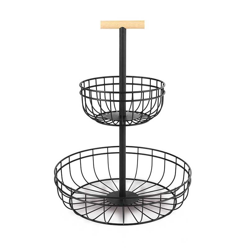 Obstschale dual in 2 höhen hergestellt aus draht, stahl-robust und langlebig mit einem finish in schwarz matt und original-design und dekoration.