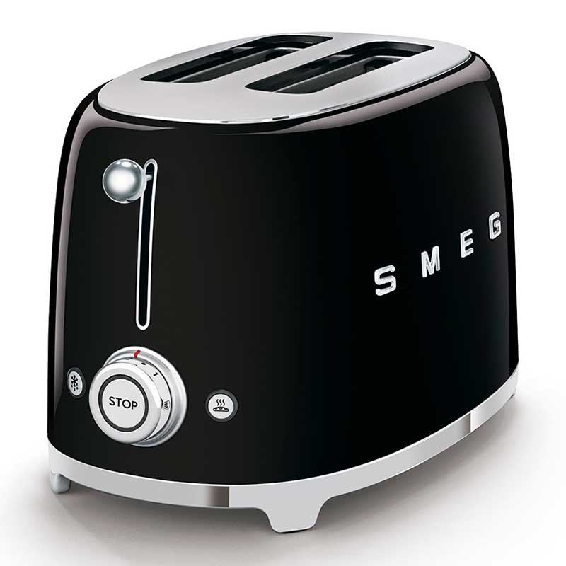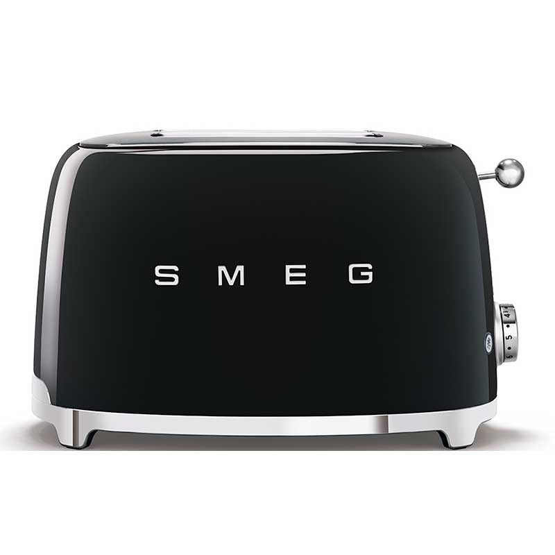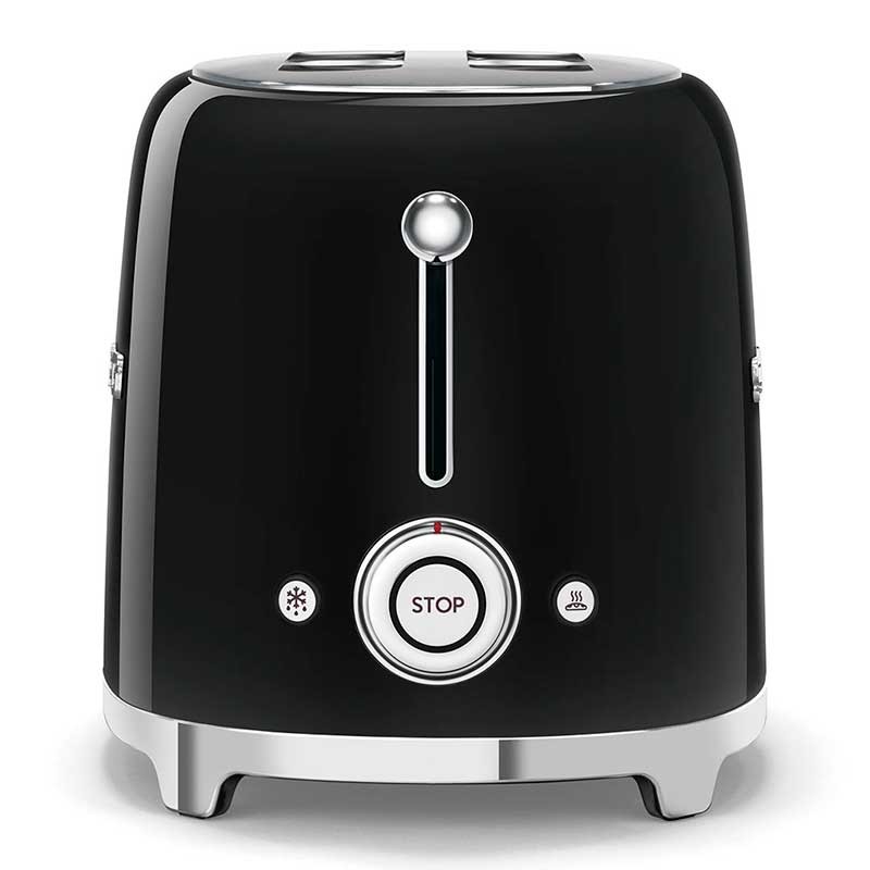 Toaster im 50er-Jahre-Stil mit glänzendem schwarzem Edelstahlgehäuse mit 6 Heizstufen und 2 Steckplätzen für 2 Toasts.