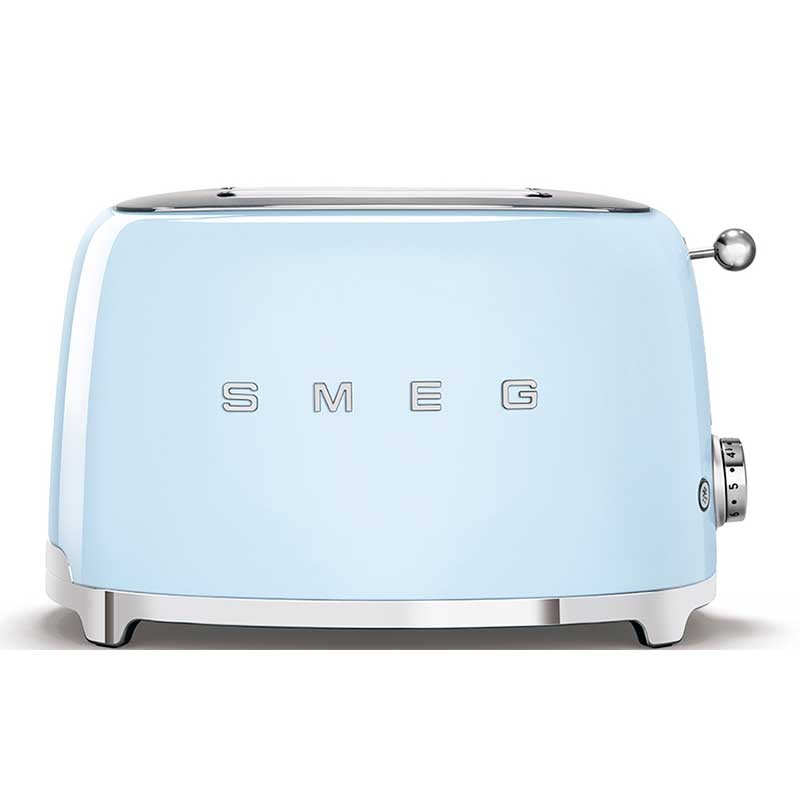 Toaster im 50er-Jahre-Stil mit Edelstahlgehäuse in leuchtender himmelblauer Farbe mit 6 Heizstufen und 2 Steckplätzen für 2 Toasts.