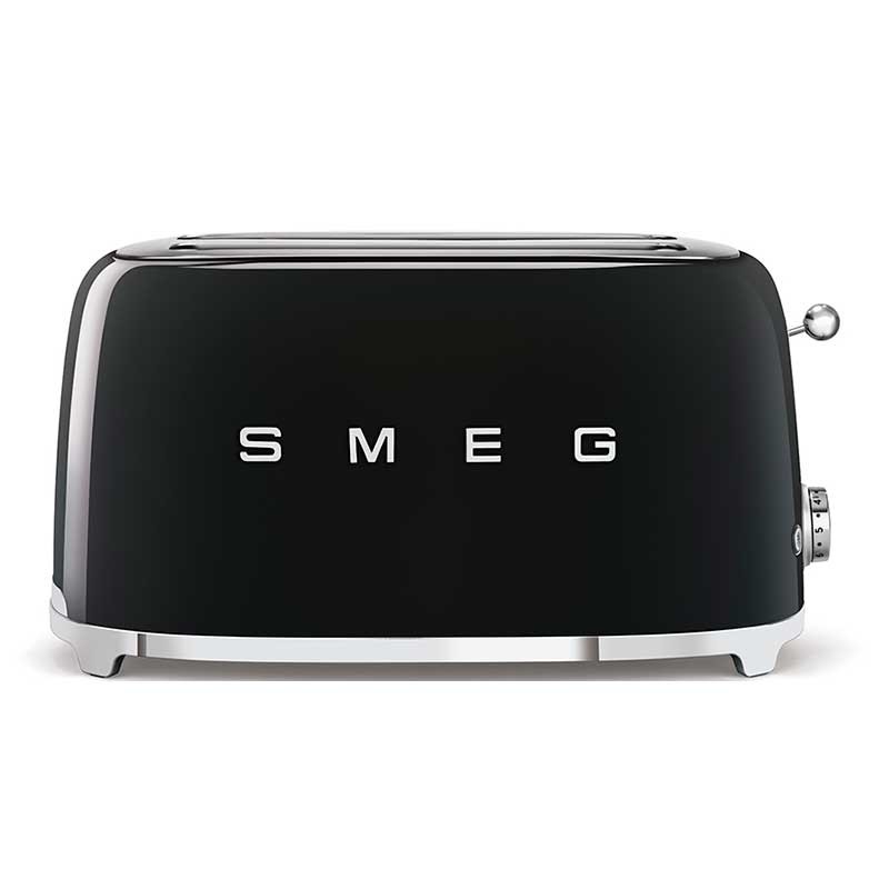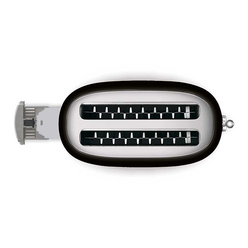 Toaster im 50er-Jahre-Stil mit glänzendem schwarzem Edelstahlgehäuse mit 6 Heizstufen und 2 Steckplätzen für 4 Toasts.