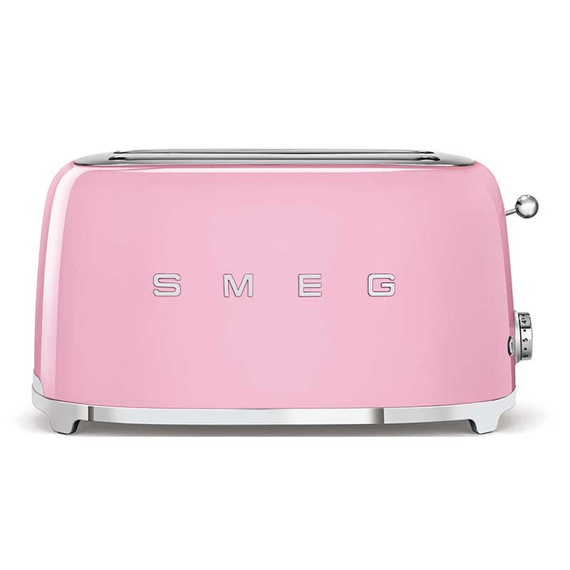 Toaster im 50er-Jahre-Stil mit glanzrosa Edelstahlgehäuse mit 6 Heizstufen und 2 Steckplätzen für 4 Toasts.