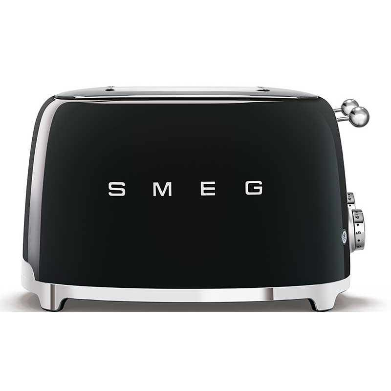 Toaster im 50er-Jahre-Stil mit glänzendem schwarzem Edelstahlgehäuse mit 6 Heizstufen und 4 Steckplätzen für 4 Toasts.