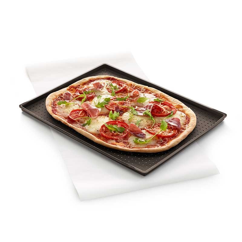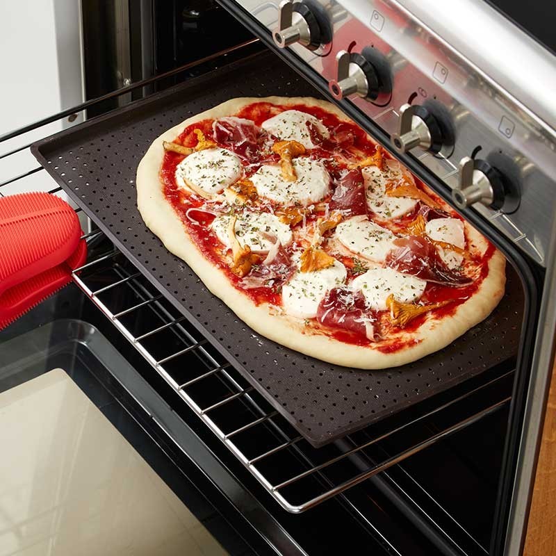 Hol dir die oberfläche knusprig, das sie schon immer wollten, um ihre pizza! Das geheimnis ist das backen! Die Pizza Mat, dank seiner mikro-perforierte bekommt abgekühlt gleichmäßig, so dass es sich reblandezca, und damit die ganze masse erstellen sie eine knusprige kruste.