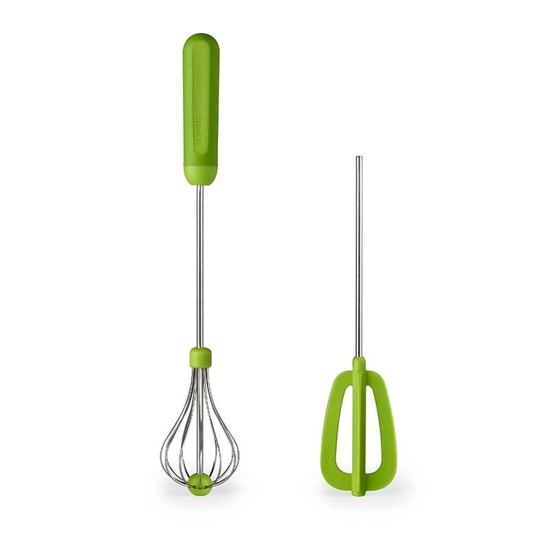Dieses set aus 2 auswechselbaren aufsätzen ermöglicht das mischen und schlagen sie schnell und ohne mühe. Der ergonomische griff ermöglicht einen besseren halt und eine höhere stabilität.