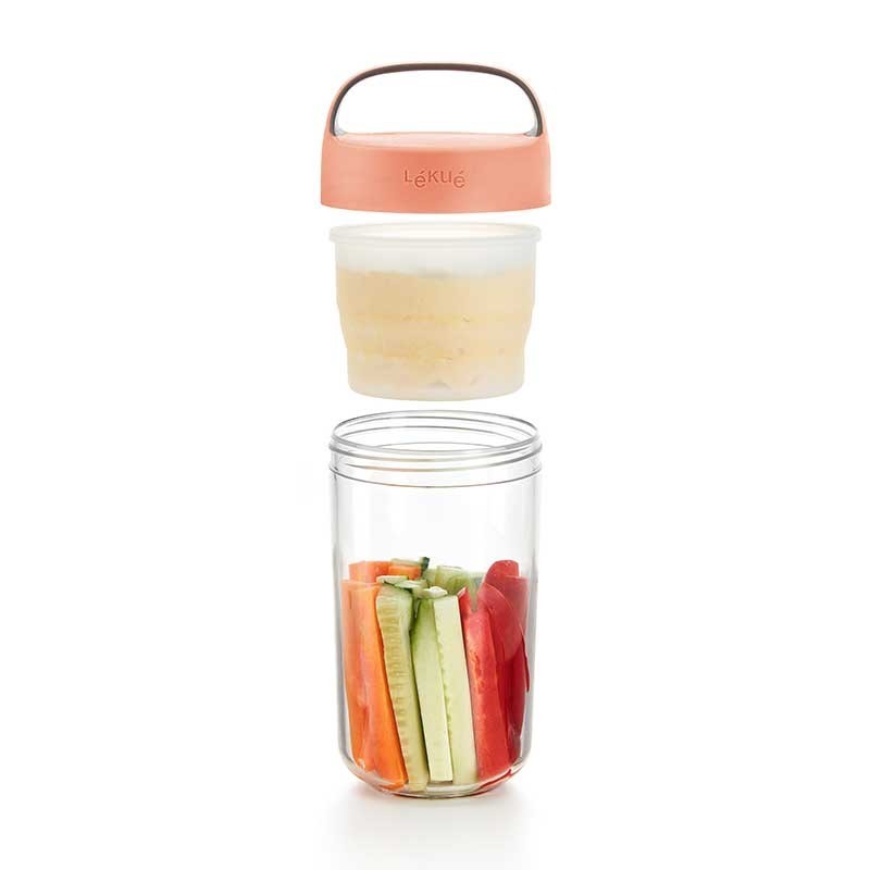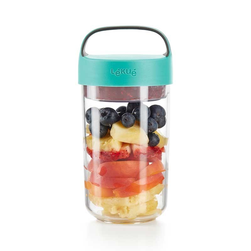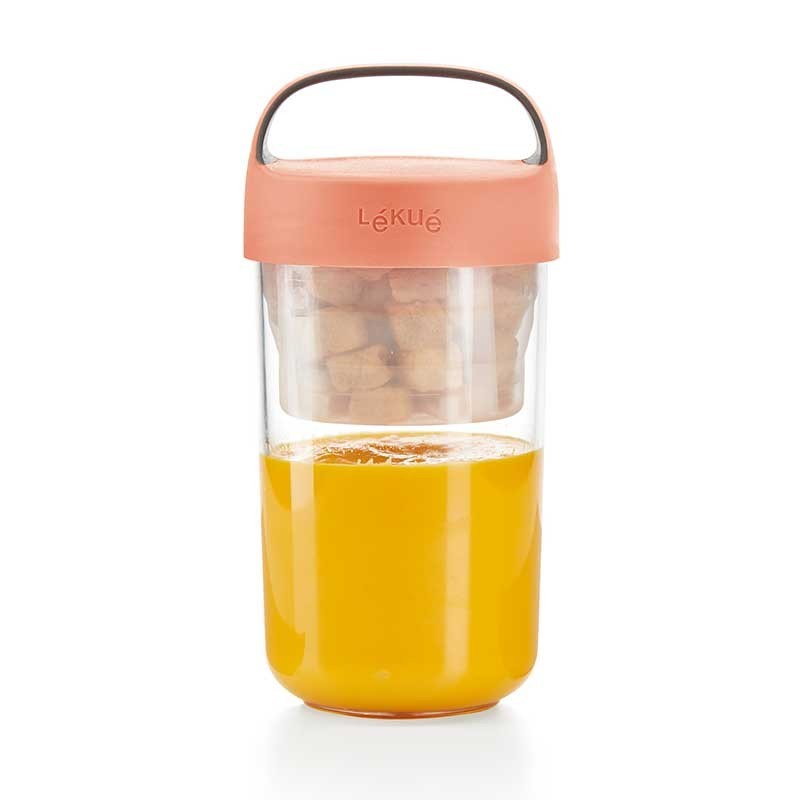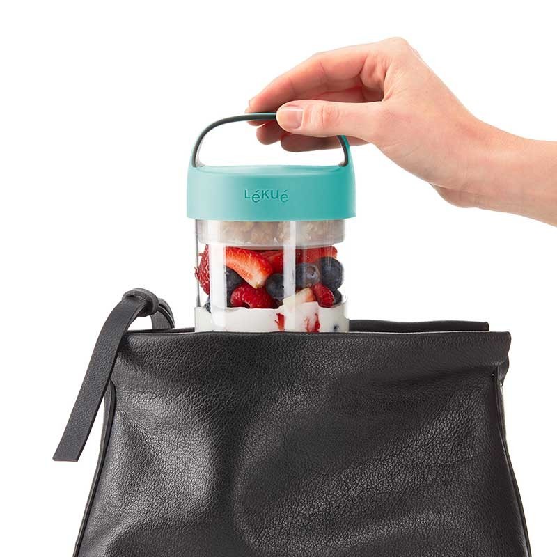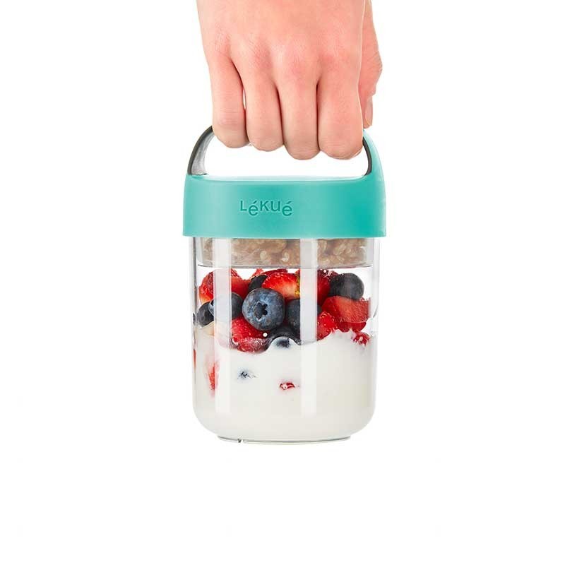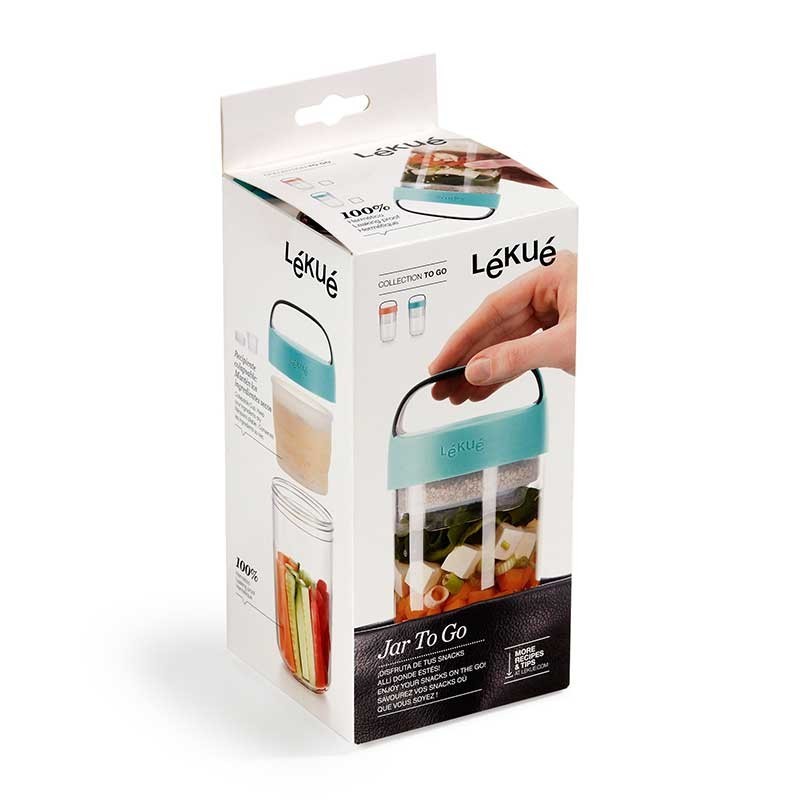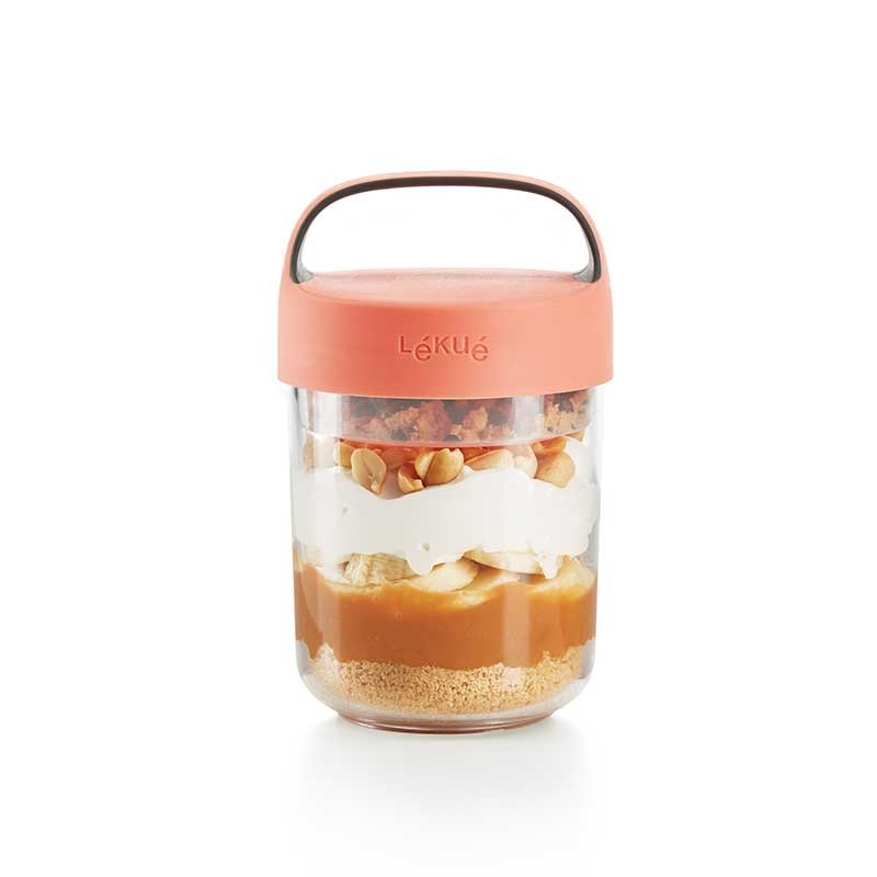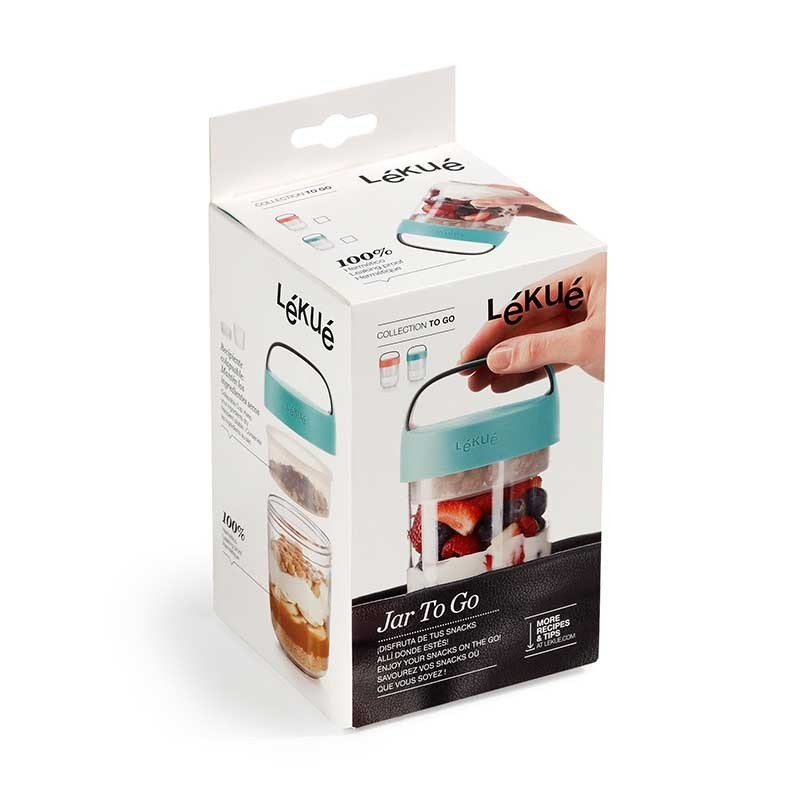 Die Jar-datei To Go ist perfekt für snacks, cremes oder desserts und genießen sie sie in die gleiche schüssel. Beinhaltet ein glas-container colapsable zu halten, die trockenen zutaten separat.