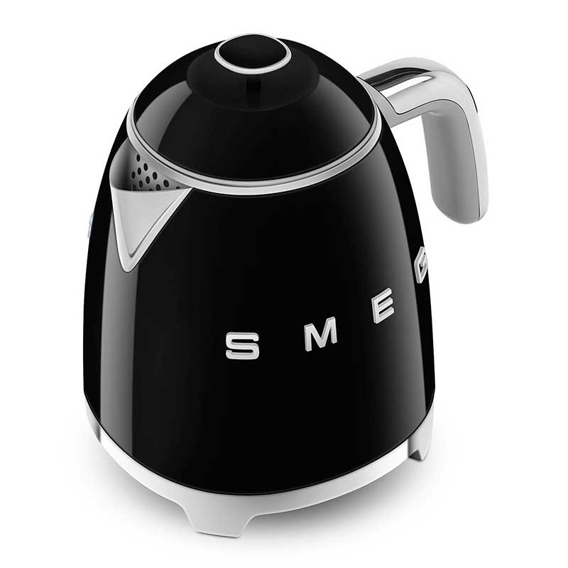 Omron 50er jahre stil 0,8 liter mini wasserkocher mit glanz schwarz kunststoff körper und 360 ° swivel basis.