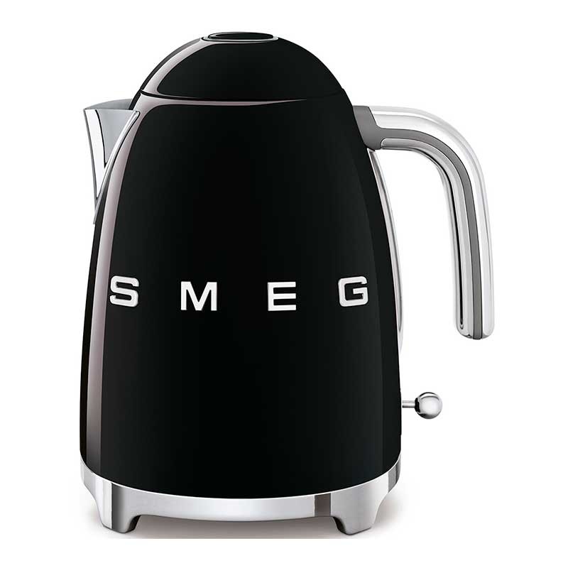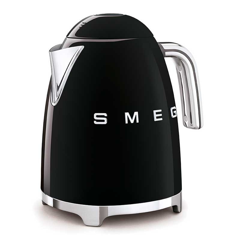 Standard Wasserkocher im 50er-Jahre-Stil von 1,7 Litern Fassungsvermögen mit Edelstahlgehäuse glänzend schwarz und 360º Schwenkfuß.