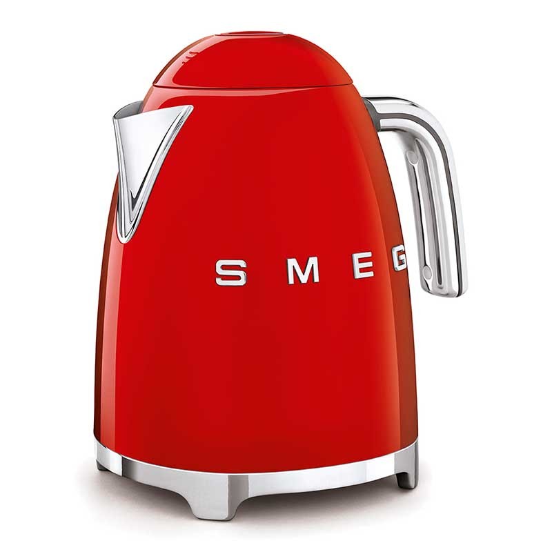 Standard Wasserkocher im 50er Jahre Stil von 1,7 Liter Fassungsvermögen mit Edelstahlgehäuse glänzend rot Finish und 360º Schwenkfuß.